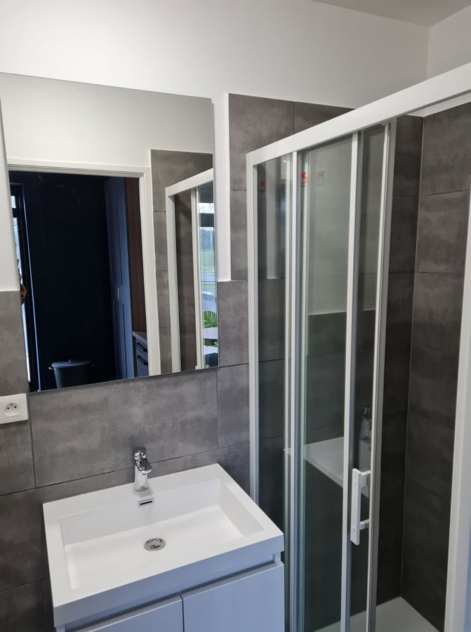 AY SUR MOSELLE: GITE D'AY : studio meublé avec terrasse privée, équipé d'une cuisine équipée avec plaque de cuisson,,hotte, réfrigérateur, canapé lit, table basse, climatisation réversible, tv, internet, équipement neuf, salle de douche avec wc , place de parking privée .Buanderie commune avec machine à laver et sèche linge.Caractéristiques